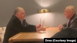 Действительно, на публикуемых в соцсетях кадрах видно, как Вольский и Хидашели тепло прощаются с друг другом, и, несмотря на холодную погоду, первый в легком пиджаке направляется к зданию парламента. В коротком разговоре с представителями «Дроа» Вольский советует им поберечь нервы: